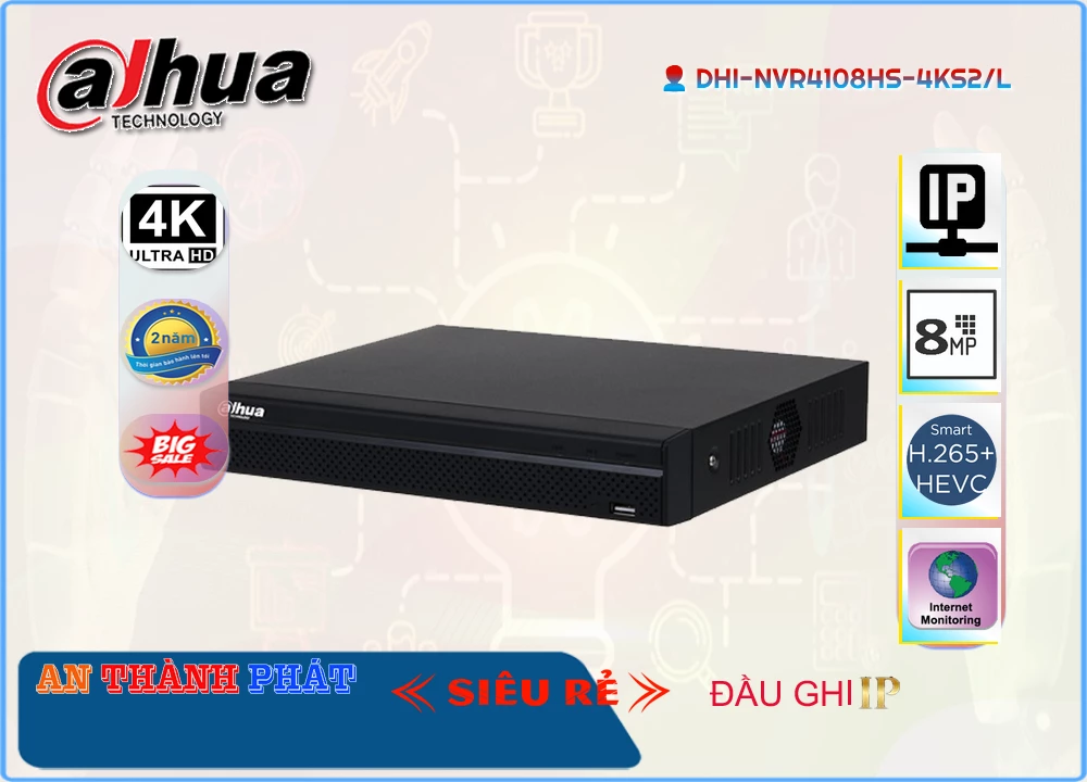 Việc thu hình nhiều màu sắc giúp cho việc nhận diện và phân biệt các đối tượng trở nên dễ dàng hơn. 🌈Chú trọn lớn nhất là sản phẩm chính hãng tại An Thành Phát ⁂Hoàn toàn tin tưởng chất lượng và uy tín. Đối với các nhu cầu an ninh và giám sát, Thiết bị thu hình DHI-NVR4108HS-4KS2/L là sự lựa chọn lý tưởng.