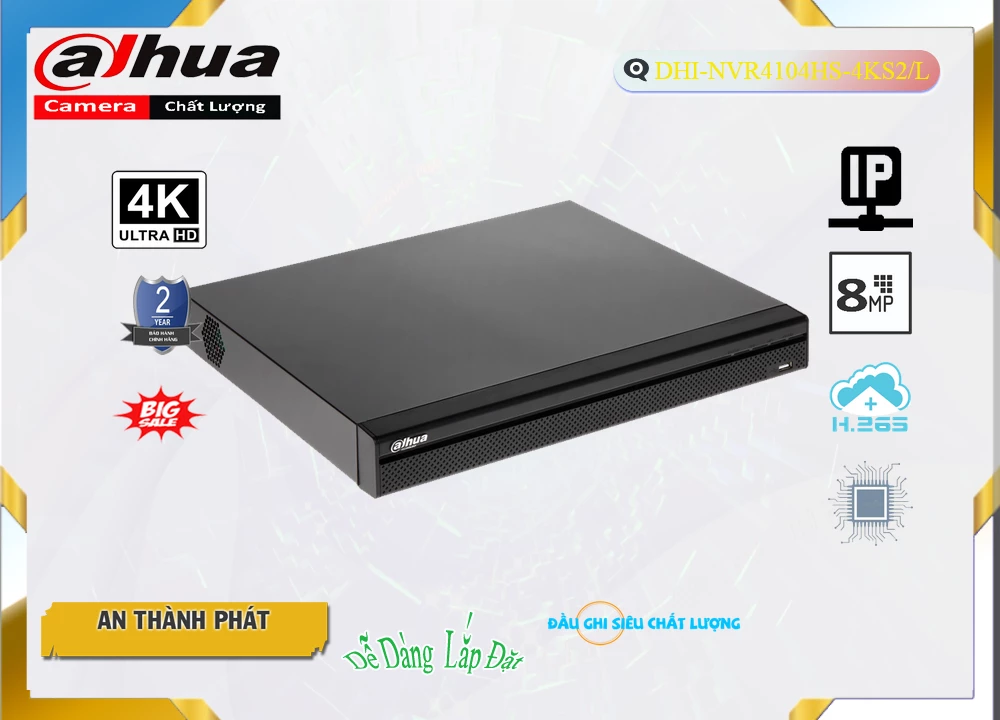 Đầu ghi IP Dahua DHI-NVR4104HS-4KS2-L là một sản phẩm chất lượng với khả năng ghi hình sắc nét lên đến 8.0 megapixel, cho phép giám sát từng chi tiết nhỏ một cách rõ ràng và chi tiết. Được trang bị công nghệ IP, an Tâm không bị giảm chất lượng hình ảnh, với chip xử lý băng thông 80 Mbps, cùng việc hỗ trợ các định dạng nén H.265+/H.265/H.264+/H.264 ♢đẳng cấp chất lượng thu hình cao.