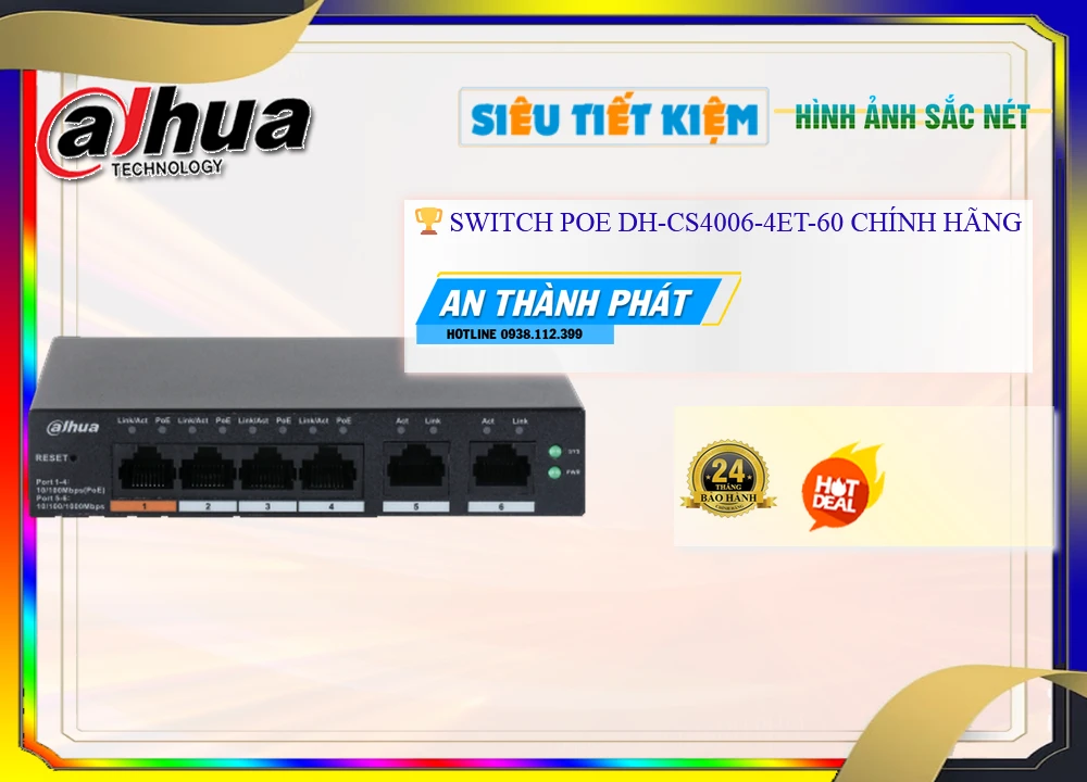 Với chức năng chia mạng linh hoạt và bảo mật tuyệt đối, Switch DH-CS4006-4ET-60 là lựa chọn hoàn hảo cho các doanh nghiệp và hộ gia đình.