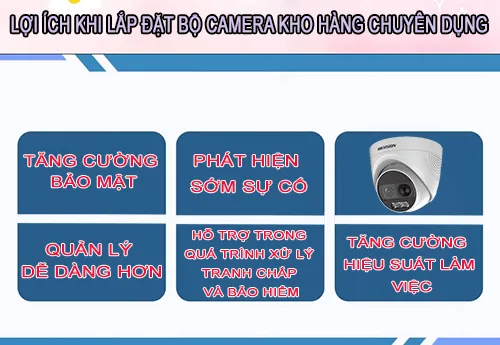 Lắp camera quan sát trong kho hàng mang lại nhiều lợi ích đáng kể cho doanh nghiệp. Dưới đây là một số lợi ích chính mà lắp đặt camera quan sát kho hàng có thể mang lại: